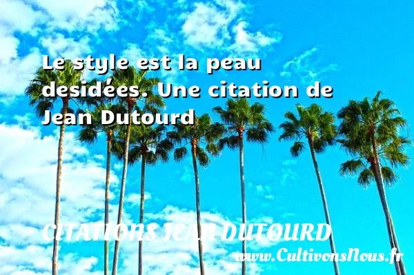 Evaluer cet article Le style est la peau des idées. Une citation de Jean Dutourd A lire Je n'ai jamais été heureux mais PARTAGER