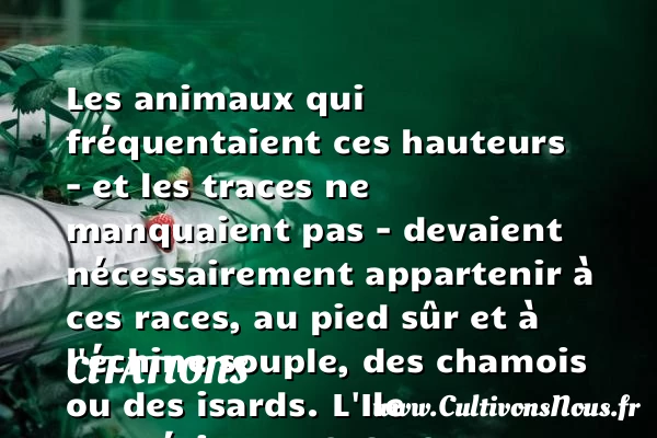 Les animaux qui fréquentaient ces hauteurs – et les traces ne manquaient pas – devaient nécessairement appartenir à ces races, au pied sûr et à l’échine souple, des chamois ou des isards.