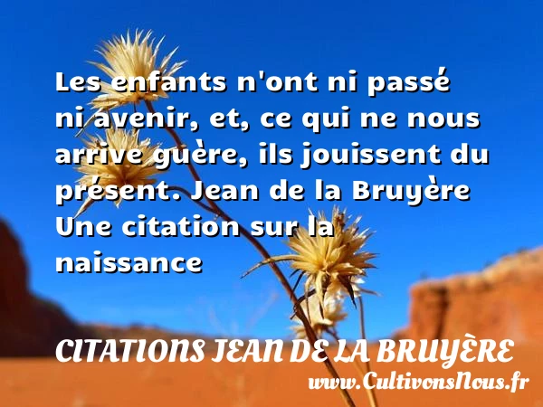 Les enfants n’ont ni passé ni avenir, et, ce qui ne nous arrive guère, ils jouissent du présent.