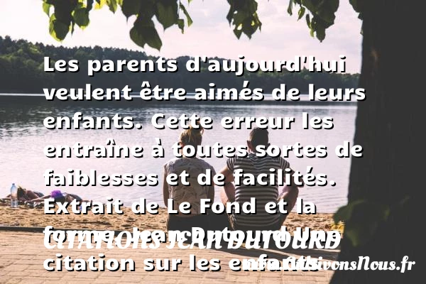 Les parents d’aujourd’hui veulent être aimés de leurs enfants. Cette erreur les entraîne à toutes sortes de faiblesses et de facilités.