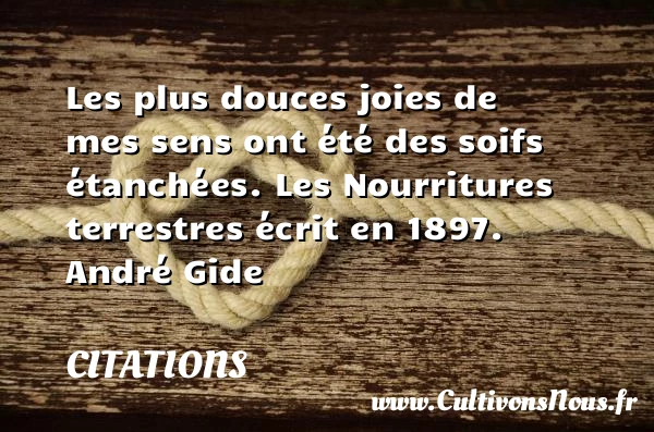 Evaluer cet article Les plus douces joies de mes sens ont été des soifs étanchées. Les Nourritures terrestres écrit en 1897. André Gide A lire Premier banquier: PARTAGER Tags: Citation nourriture