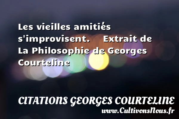 Evaluer cet article Les vieilles amitiés s'improvisent. Extrait de La Philosophie de Georges Courteline A lire Il y a deux sortes de femmes PARTAGER