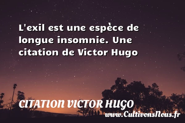 Evaluer cet article L’exil est une espèce de longue insomnie. Une citation de Victor Hugo A lire La philosophie PARTAGER Tags: Citation insomnieCitations homme