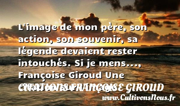L’image de mon père, son action, son souvenir, sa légende devaient rester intouchés.