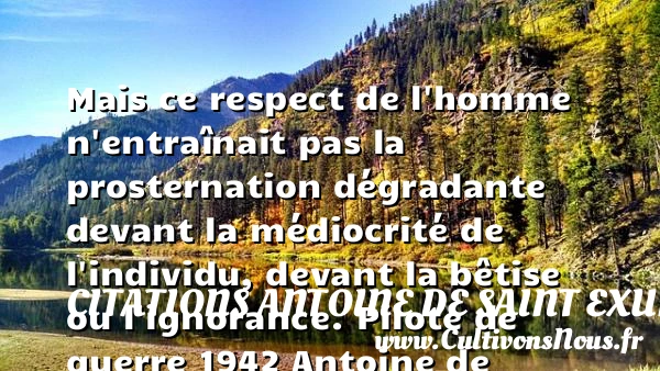 Mais ce respect de l’homme n’entraînait pas la prosternation dégradante devant la médiocrité de l’individu, devant la bêtise ou l’ignorance.