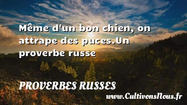 Evaluer cet article Même d’un bon chien, on attrape des puces. Un proverbe russe A lire Ne touche pas à l'ouvrage PARTAGER