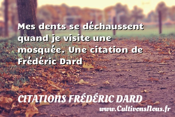 4.5/5 - (2 votes) Mes dents se déchaussent quand je visite une mosquée. Une citation de Frédéric Dard A lire La foi, c'est prier un doute PARTAGER
