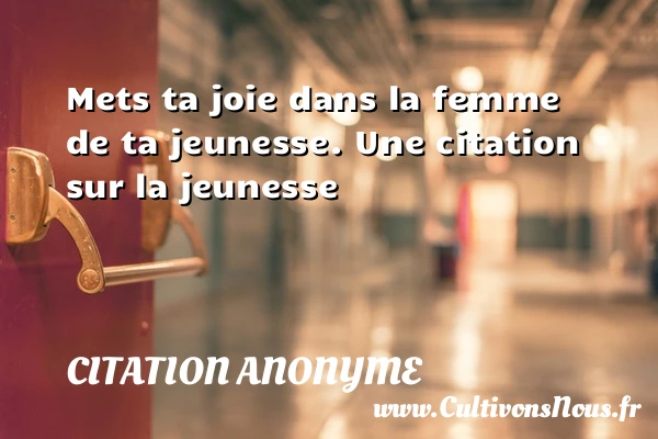 Evaluer cet article Mets ta joie dans la femme de ta jeunesse. Une citation sur la jeunesse A lire Avec les moniteurs PARTAGER Tags: Citation Jeunesse