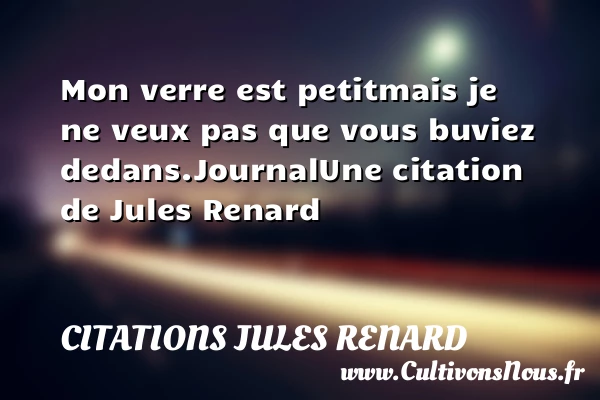 Evaluer cet article Mon verre est petit mais je ne veux pas que vous buviez dedans. Journal Une citation de Jules Renard A lire Comment se fait-il donc PARTAGER