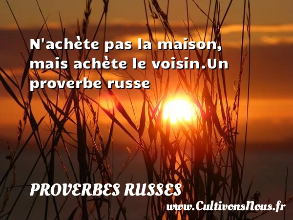 Evaluer cet article N’achète pas la maison, mais achète le voisin. Un proverbe russe A lire Le cheval ne vaut pas PARTAGER
