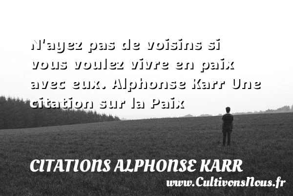 Evaluer cet article N’ayez pas de voisins si vous voulez vivre en paix avec eux. Alphonse Karr Une citation sur la Paix A lire Les Français décidément ne PARTAGER Tags: Citation paix
