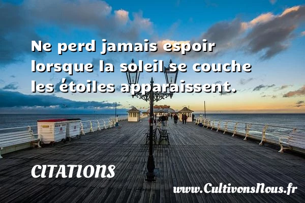 Ne perd jamais espoir lorsque la soleil se couche les étoiles apparaissent.