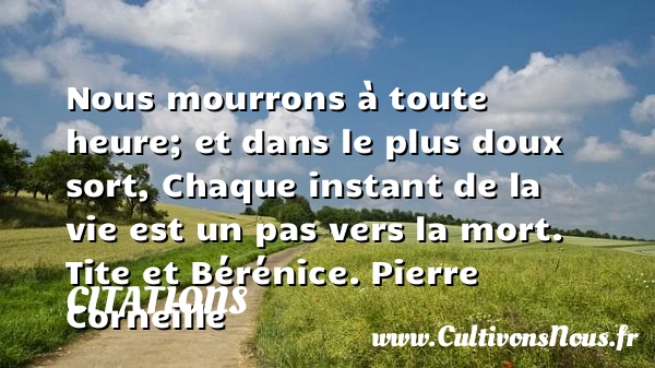 Nous mourrons à toute heure; et dans le plus doux sort, Chaque instant de la vie est un pas vers la mort.