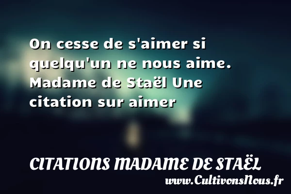 Evaluer cet article On cesse de s’aimer si quelqu’un ne nous aime. Madame de Staël Une citation sur aimer A lire Qui veut être heureux et PARTAGER