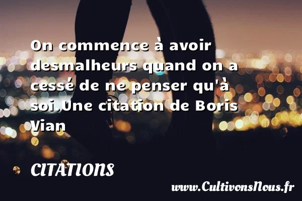 Evaluer cet article On commence à avoir des malheurs quand on a cessé de ne penser qu’à soi. Une citation de Boris Vian A lire Quand ils peuvent choisir les PARTAGER