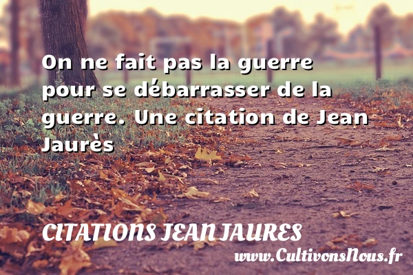 5/5 - (1 vote) On ne fait pas la guerre pour se débarrasser de la guerre. Une citation de Jean Jaurès A lire La guerre est la multiplication PARTAGER Tags: Citation guerre