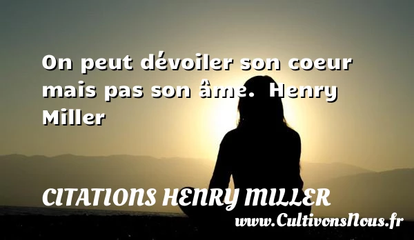 Evaluer cet article On peut dévoiler son coeur mais pas son âme. Henry Miller A lire Tout homme qui aurait conscience PARTAGER