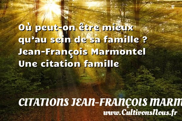 Evaluer cet article Où peut-on être mieux qu’au sein de sa famille ? Jean-François Marmontel Une citation famille A lire Ce qui se passe dans les livres PARTAGER Tags: Citation famille