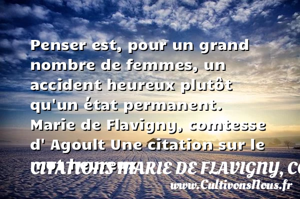 Penser est, pour un grand nombre de femmes, un accident heureux plutôt qu’un état permanent.