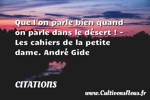 Evaluer cet article Que l’on parle bien quand on parle dans le désert ! – Les cahiers de la petite dame. André Gide A lire Tu étais ma raison de vivre PARTAGER