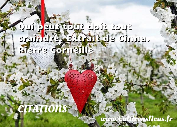 Evaluer cet article Qui peut tout doit tout craindre. Extrait de Cinna. Pierre Corneille A lire S'il n'y a pas de prix à payer, PARTAGER