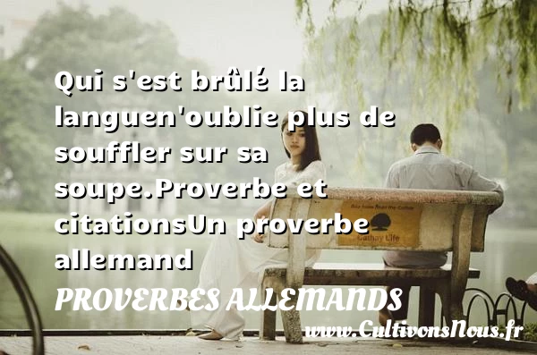 Evaluer cet article Qui s’est brûlé la langue n’oublie plus de souffler sur sa soupe. Proverbe et citations Un proverbe allemand A lire On ne bâtit rien avec des PARTAGER