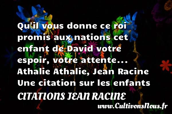 Qu’il vous donne ce roi promis aux nations cet enfant de David votre espoir, votre attente… Athalie