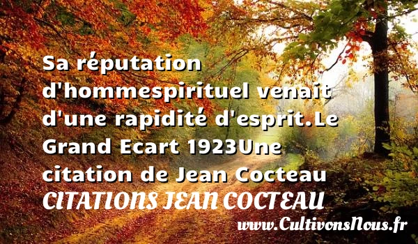 Evaluer cet article Sa réputation d’homme spirituel venait d’une rapidité d’esprit. Le Grand Ecart 1923 Une citation de Jean Cocteau A lire Je lis, Je crois lire. PARTAGER