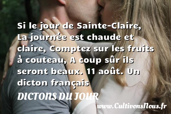 Si le jour de Sainte-Claire, La journée est chaude et claire, Comptez sur les fruits à couteau, A coup sûr ils seront beaux.