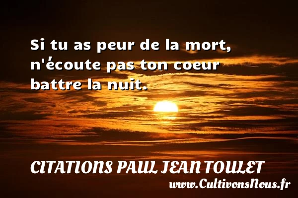 Evaluer cet article Si tu as peur de la mort, n'écoute pas ton coeur battre la nuit. A lire Apprends à te connaître PARTAGER