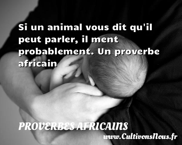 Evaluer cet article Si un animal vous dit qu’il peut parler, il ment probablement. Un proverbe africain A lire Mieux vaut entendre parler du roi que de le PARTAGER Tags: Proverbes parler