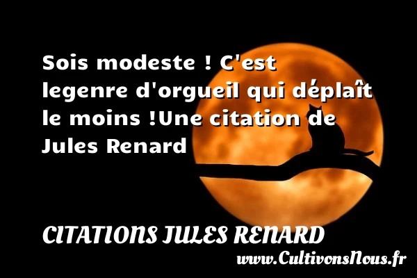 Evaluer cet article Sois modeste ! C’est le genre d’orgueil qui déplaît le moins ! Une citation de Jules Renard A lire Il y a le peureux qui regarde PARTAGER