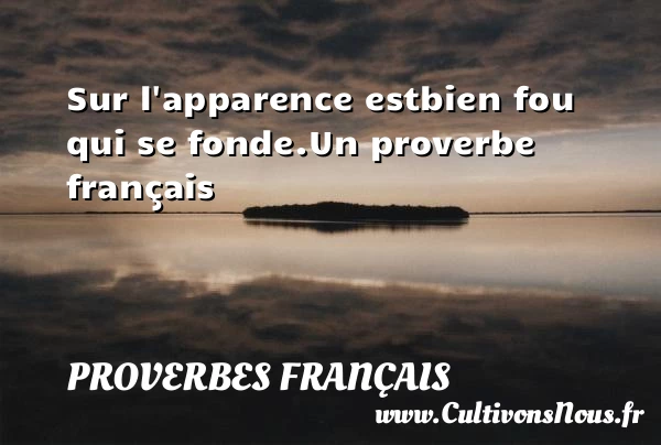 Evaluer cet article Sur l’apparence est bien fou qui se fonde. Un proverbe français A lire Tout nouveau, tout PARTAGER