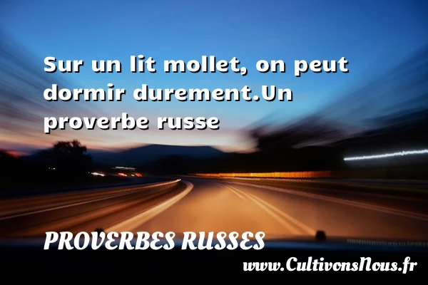 Evaluer cet article Sur un lit mollet, on peut dormir durement. Un proverbe russe A lire Besoin n'attend pas le beau PARTAGER
