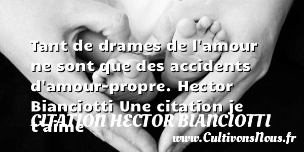 Evaluer cet article Tant de drames de l’amour ne sont que des accidents d’amour-propre. Hector Bianciotti Une citation je t’aime A lire J'aime... à ce nom fatal, je PARTAGER Tags: Citations je t aime