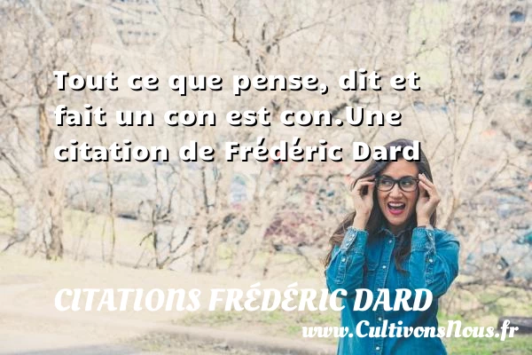 Evaluer cet article Tout ce que pense, dit et fait un con est con. Une citation de Frédéric Dard A lire Il faut toujours faire passer PARTAGER