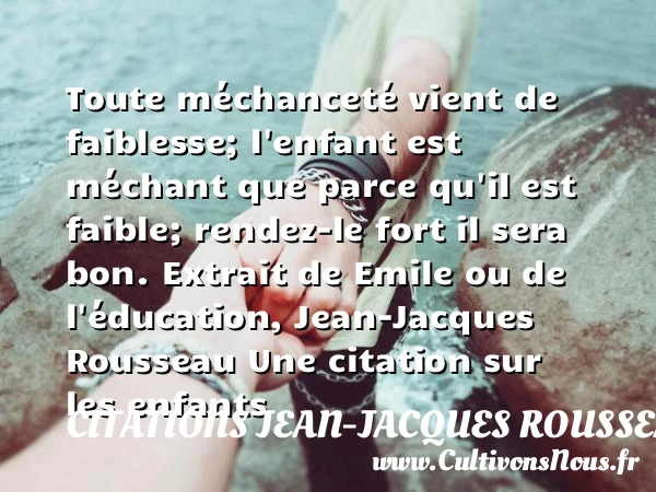 Toute méchanceté vient de faiblesse; l’enfant est méchant que parce qu’il est faible; rendez-le fort il sera bon.