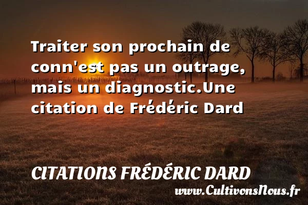 Evaluer cet article Traiter son prochain de con n’est pas un outrage, mais un diagnostic. Une citation de Frédéric Dard A lire Je me demande si la mort vaut PARTAGER
