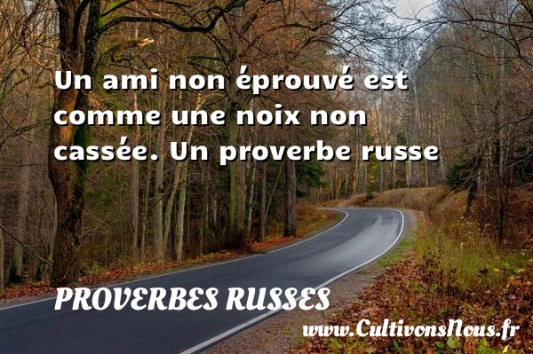 Evaluer cet article Un ami non éprouvé est comme une noix non cassée. Un proverbe russe A lire Les meilleurs amis sont PARTAGER Tags: Proverbes Amitié