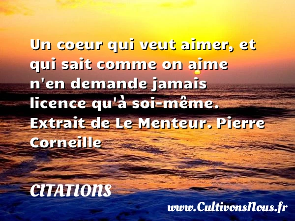 Un coeur qui veut aimer, et qui sait comme on aime n’en demande jamais licence qu’à soi-même.