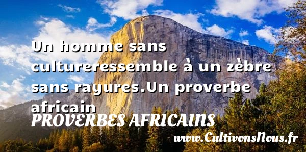Evaluer cet article Un homme sans culture ressemble à un zèbre sans rayures. Un proverbe africain A lire Quand on a mangé salé, on ne PARTAGER