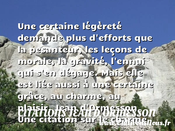 Une certaine légèreté demande plus d’efforts que la pesanteur, les leçons de morale, la gravité, l’ennui qui s’en dégage. Mais elle est liée aussi à une certaine grâce, au charme, au plaisir.
