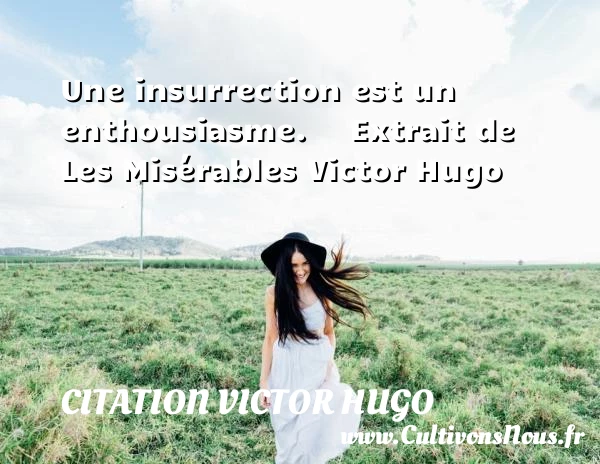 Evaluer cet article Une insurrection est un enthousiasme. Extrait de Les Misérables Victor Hugo A lire Il vient une heure où protester PARTAGER