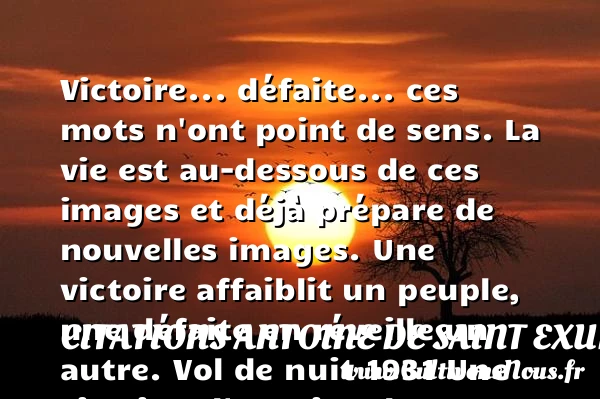Victoire… défaite… ces mots n’ont point de sens. La vie est au-dessous de ces images et déjà prépare de nouvelles images. Une victoire affaiblit un peuple, une défaite en réveille un autre.